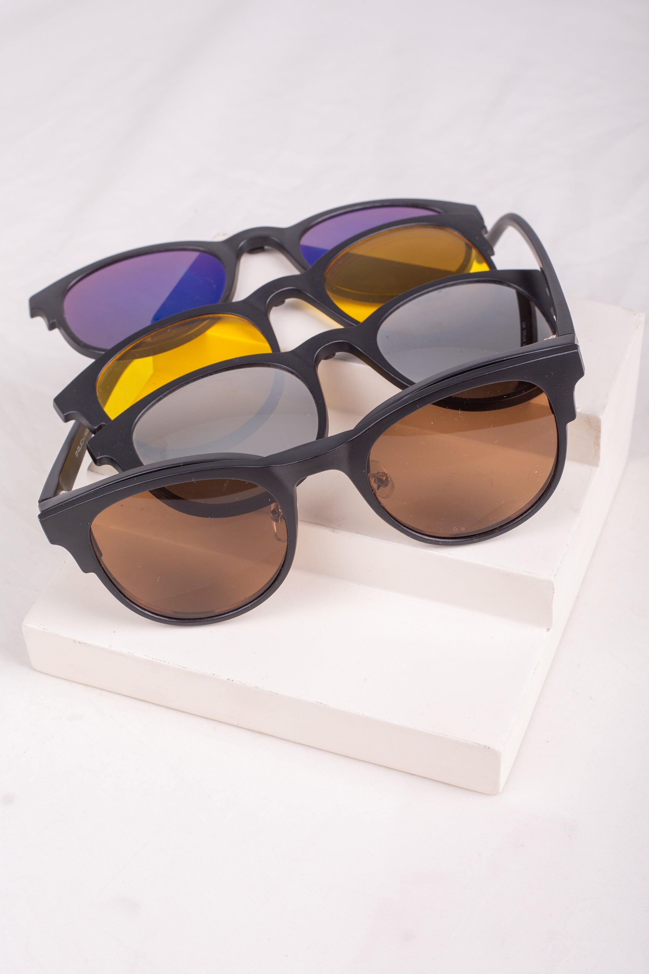 Toc black optical glasses designed for everyday comfort and style Featuring a lightweight durable frame with clear lenses for medical use, plus a convenient clip-on UV protection sunglass lens Easily switch between indoor vision and outdoor sun protection while keeping a modern elegant look Ideal for those who value both practicality and versatility in their eyewear